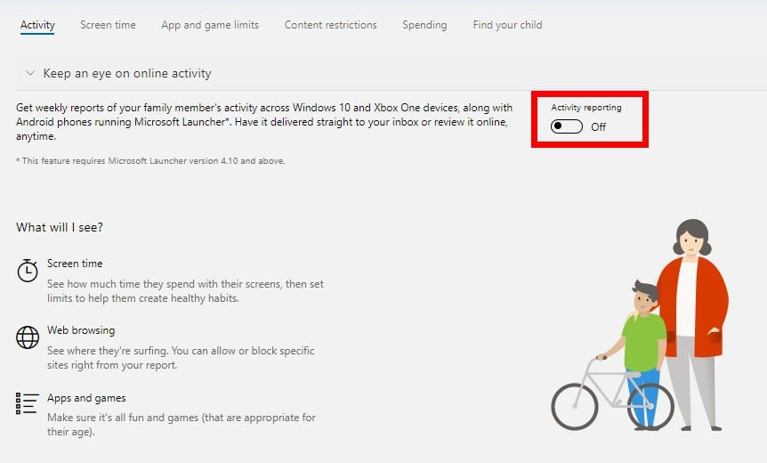 - Go to family.microsoft.com and click Activity next to your child's account.